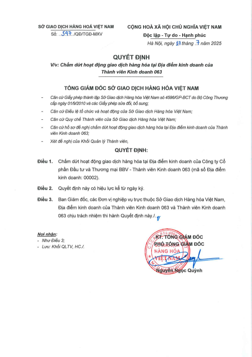 Thông báo chấm dứt hoạt động tại địa điểm kinh doanh